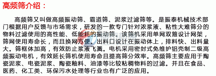 標簽: 陶瓷泥漿過濾高頻篩 高頻篩振動篩