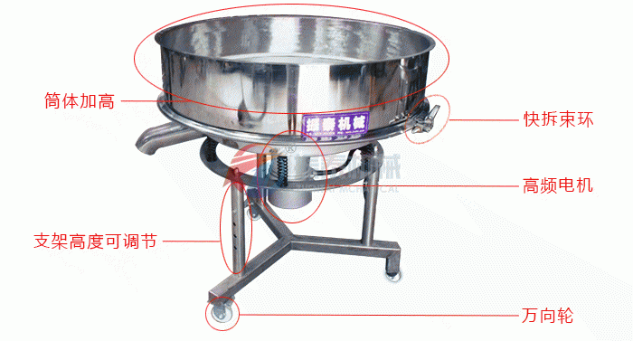 4、采用快拆束環,換網時只需輕輕一推,篩框和網架就可以拿下來。換網更快捷!